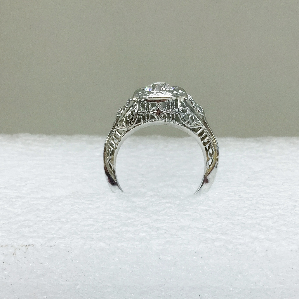Antique Quality 18 Karat Filigree White Gold Euro Cut Diamond Ring