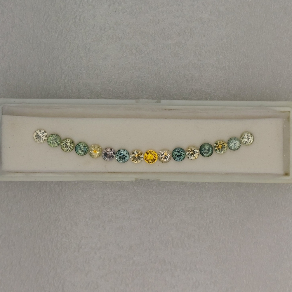 Note: "An exquisite suite of round brilliant-cut Montana Sapphires from Rock Creek, Montana. This collection features a vibrant spectrum of natural colors, each stone meticulously faceted to showcase exceptional brilliance and clarity."