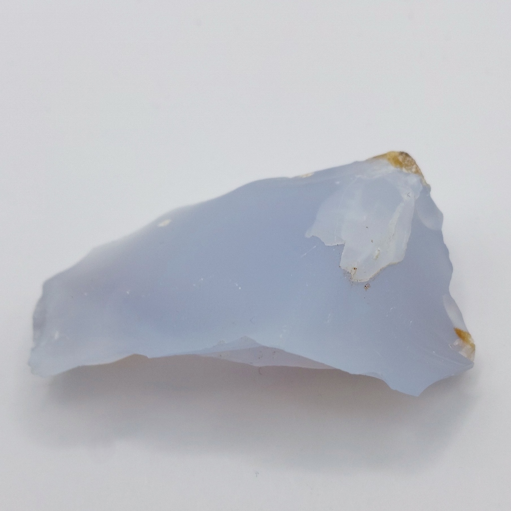 Note: Natural blue Chalcedony from Madagascar with a couple of tiny dendritic paterns. Suitable for cabbing, carving or will make a great mineral specimen.
