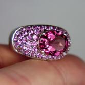 Quality Fine Color Pink Tourmaline and Pink Sapphire Ring 14kt WG GLI PAID Litnon.com