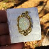 Multi-Color Fire Vintage 18 kt Carved Australian Opal Pendant Litnon.com