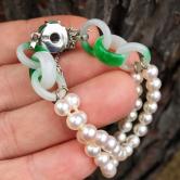 Vintage Fine Quality Burmese Jadeite and Pearl Bracelet 14kt GL Litnon.com