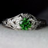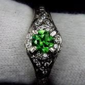 Antique 14kt White Gold Russian Demantoid Garnet and Diamond Ring Litnon.com