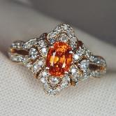 Estate Pretty Mandarin Garnet Diamond Ring 14kt  Litnon.com