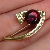 Estate Custom Rhodolite Garnet Diamond 14 kt Brooch - Pendant Litnon.com