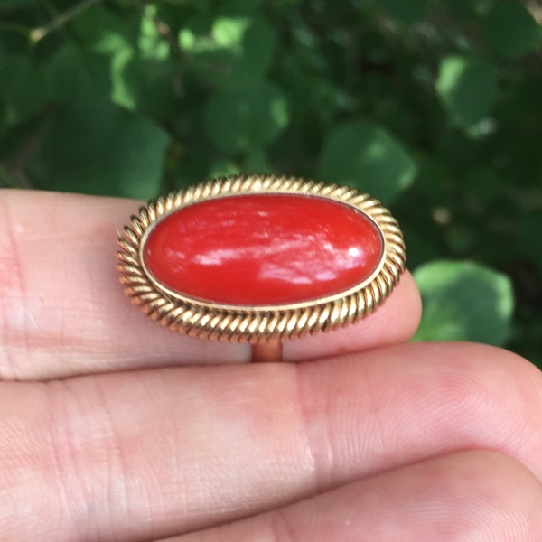 Antique Sardinian Ox Blood Coral 14kt Gold Ring
