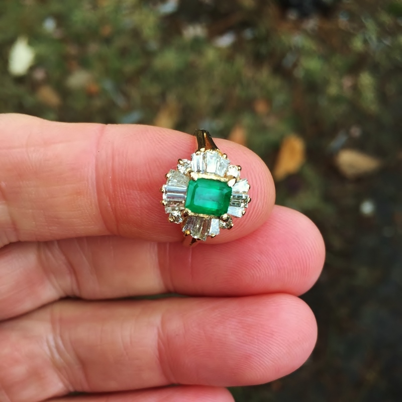 Fine Color Colombian Emerald and Diamond Ring 14 kt