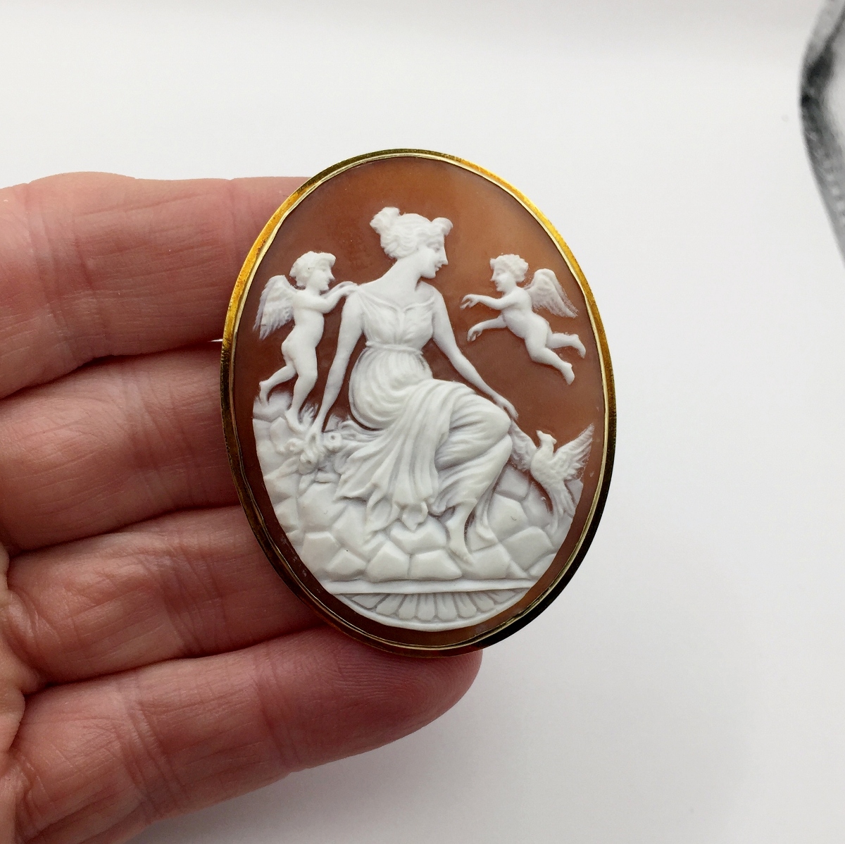 Antique Extra Large Shell Cameo Pin 14-karat Yellow Gold