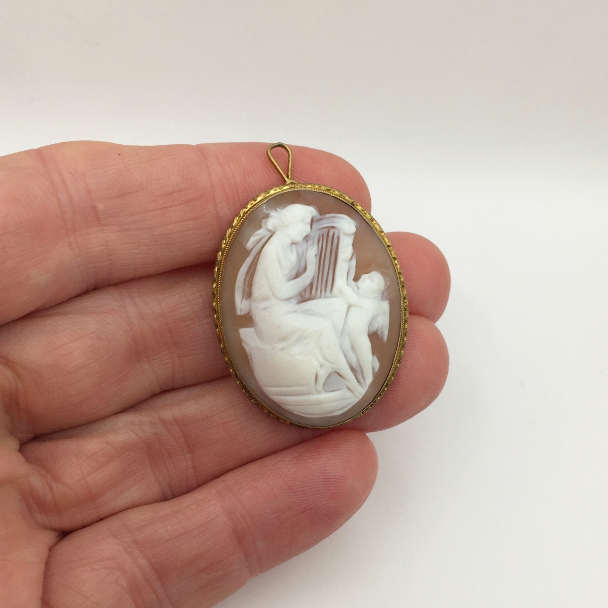 Note: This beautiful antique 14-karat yellow Gold Shell Cameo pin /pendant from the early 1900s is in excellent condition!