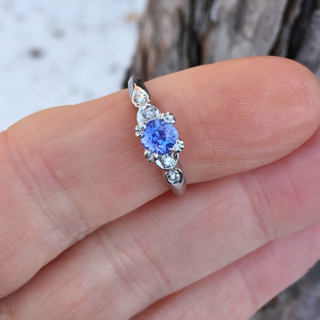 Vintage Estate Platinum Lilac Sapphire Diamond Ring