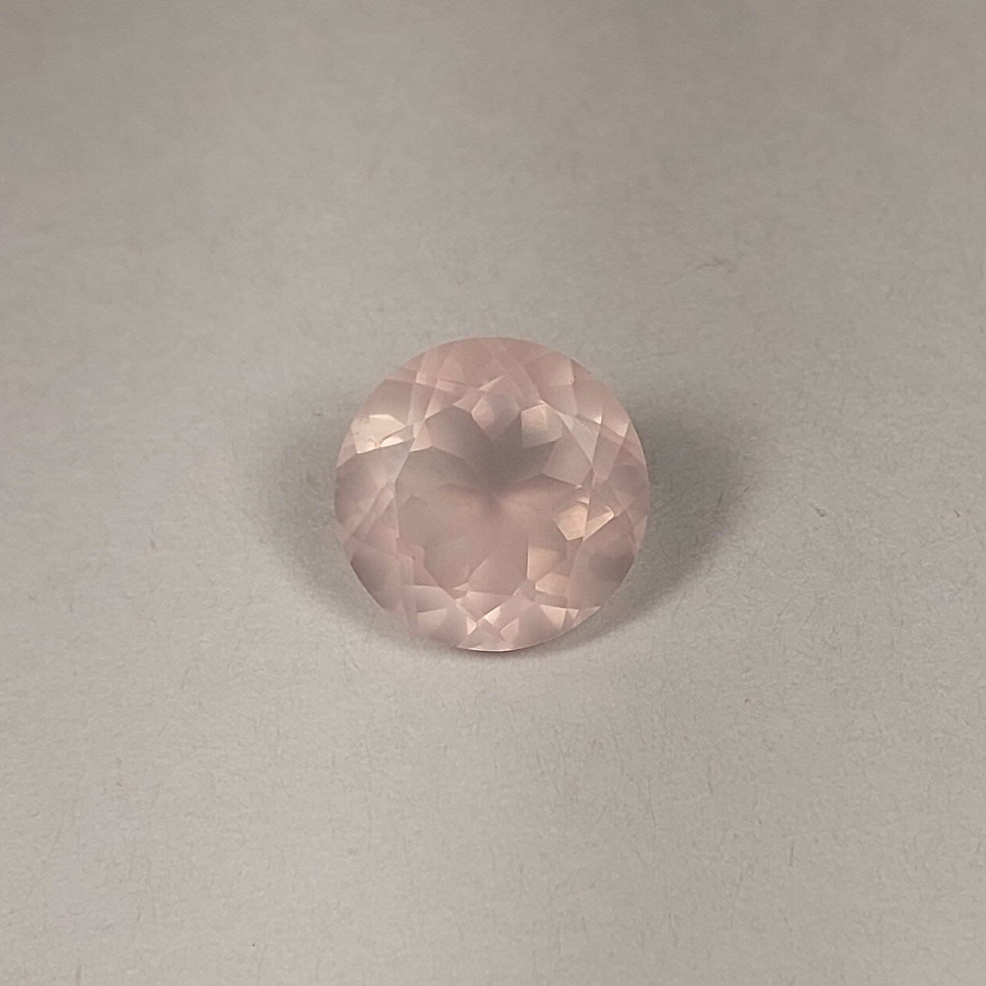 Note: Eye-clean Brazilian Rose Quartz featuring a precision Portuguese round cut for maximum brilliance. Excellent light return and a "big look" for the weight. A vibrant, feminine gem that looks even better in person.