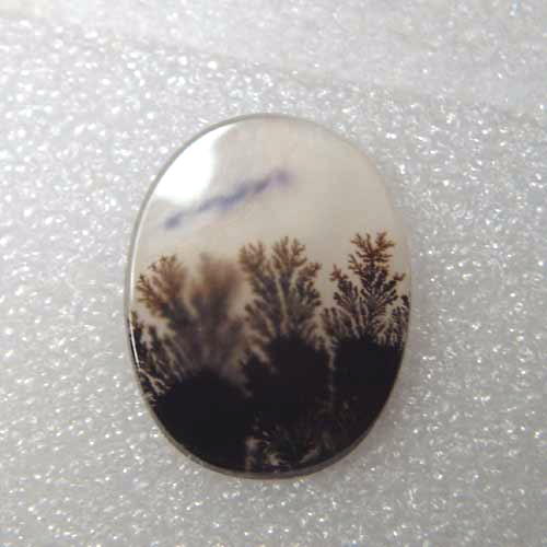 Note: Dendritic Agate is a form of Chalcedony Quartz in which the included dendrites form a plant-like or scenic image. This gem was carefully hand-crafted and polished to display the best possible image.