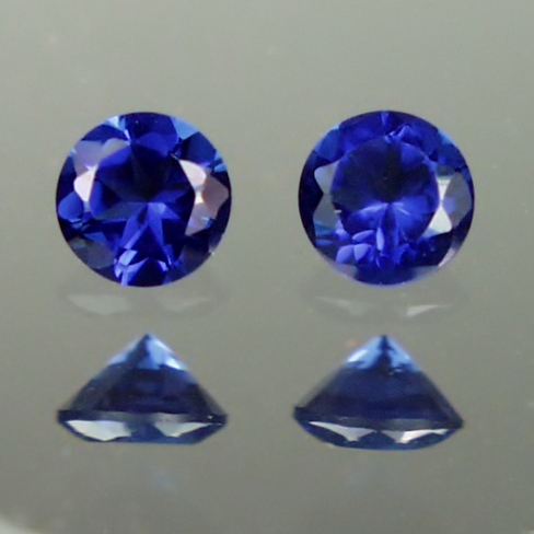 Note: Matched pair of 5 mm Lab grown Sapphires. Bright gems with perfect cutting and intense color.