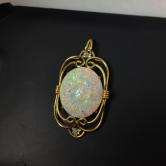 Multi-Color Fire Vintage 18 kt Carved Australian Opal Pendant Litnon.com
