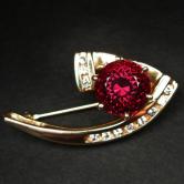 Estate Custom Rhodolite Garnet Diamond 14 kt Brooch - Pendant Litnon.com